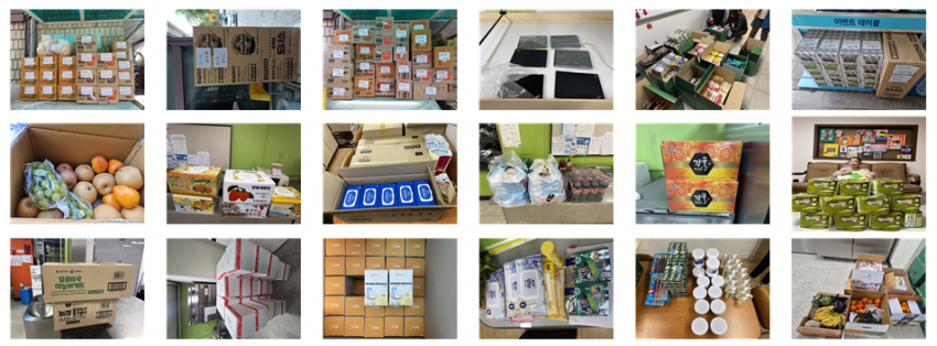 의류, 시각장애인용교구, 섬유유연제(성북시각장애인복지관), 둘레길산책프로그램(하나증권), 가공식품(GS25 뉴번동기쁨점, 상계동일점, 삼양역점, 중계동진점, 상계타운점, 상계하이츠점, 중계럭키점), 가공식품(세븐일레븐쌍문장터점), 노트북외 주변기기, 프로그램저녁식사지원(미쉐린코리아), 기부세트(삼양감리교회), 과일(샘물교회), 샴푸, 염색약(아모레퍼시픽), 과일(개인후원자), ***피자저녁식사지원(서울동산교회), **운동화(강북푸드뱅크), 방한용품, 남산산책프로그램식사지원(멀츠코리아), 방한용품(허브플렛폼), 김치, 운동화(서울시장애인복지시설협회), 기저귀, 가방(주사랑공동체), 기저귀, 섬유유연제(개인후원자), 영양제(신도바이오실크), 김치, 쌀, 가공식품(농협경제지주)