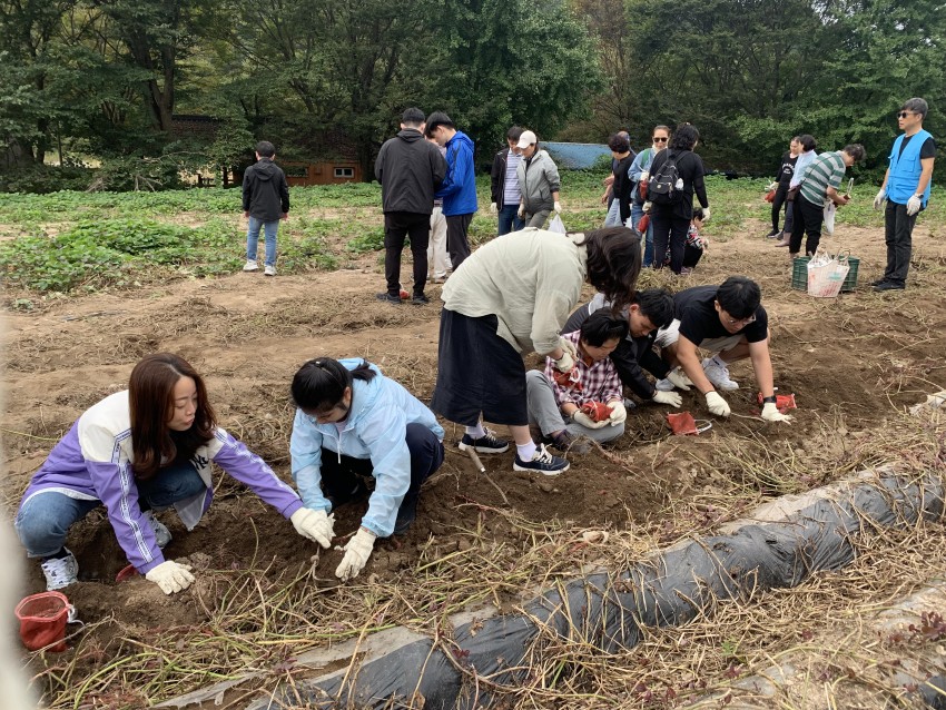 안내자의 도움을 받아 고구마도 캐고, 인절미 떡도 메쳐보고, 꽃잎과 나뭇잎을 흰 손수건에 끼워 두드리며 천연 염색도 해보고 감자전도 부쳐 먹어 보았습니다. 평소에 해보지 않은 활동들이어서 더욱 즐겁고 의미 있는 시간을 보냈습니다.