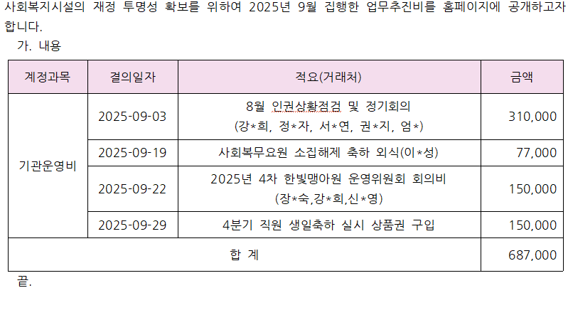 2025년 9월 업무추진비 내역 페이지 정보 작성자 정주희 작성일25-10-01 17:29 조회23회 댓글0건 관련링크 다음글 목록 본문 . 댓글목록 등록된 댓글이 없습니다. 다음글 목록