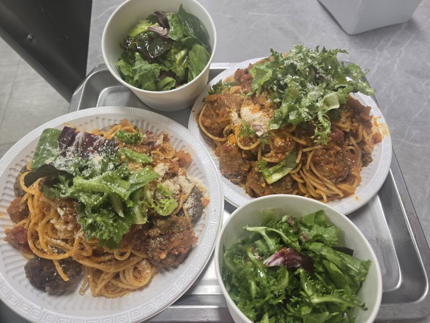 주방장님이 준비해 주신 재료로 조리실습 하였는데, 소고기, 돼지고기 민찌에 볶음양파, 우스타 소스, 밀가루, 빵가루, 계란, 소금 후추를 넣어 반죽하여 준비하고,반죽한 고기를 밤알 크기로 동글동글하게 만들어 팬에 익혀줌. 스파게티면을 소금과 올리브오일을 넣어 삶아 주고, 팬에 스파게티 소스를 넣어 끓이다가 스파게티면과 미트볼을 넣어 비벼서 시식하였는데, 매우 맛있었고, 만족스러운 시간이었습니다.