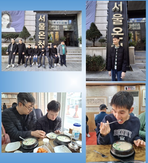 11월 13일 이용인분들과 서울온천사우나로 나들이를 다녀왔습니다. 따뜻한 온천수에 몸을 담그며 편안한 휴식을 즐기셨고, 모두 밝은 표정과 여유로운 모습이었습니다. 특히 일부 이용인 분들은 세신 서비스를 이용해 더욱 개운함과 만족감을 느끼며 즐거워하셨습니다. 온천 후에는 맛있는 도가니탕과 설렁탕으로 점심 식사를 하며 즐거운 대화를 나누는 시간을 가졌습니다. 하루 동안 서로에게 미소를 나누고 함께 온천을 즐기며 따뜻한 추억을 쌓을 수 있었던 뜻깊은 시간이었습니다.