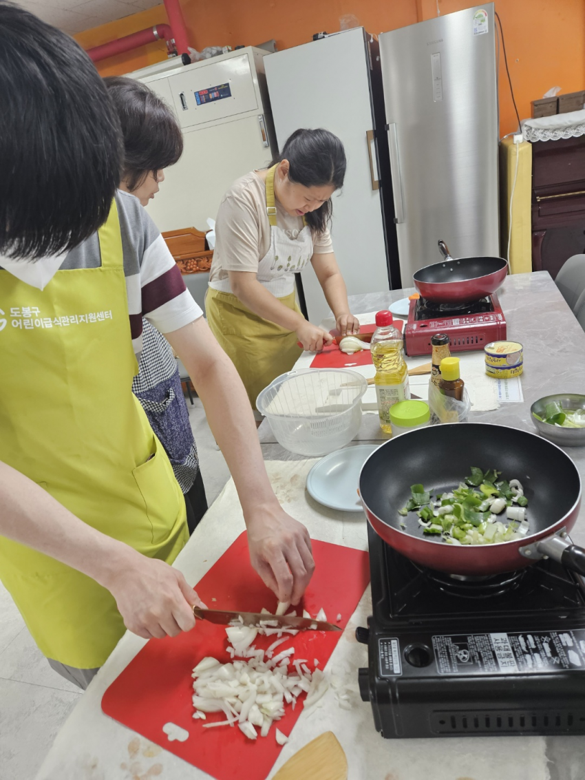 심화반은 ‘햄야채볶음밥, 참치야채볶음밥 만들기’ 2회를 실시하며 야채를 다듬고 썰기, 기름에 볶기, 밥을 넣고 골고루 섞기, 간 맞추기 등등 다양한 훈련을 통해 수행 능력을 키우고 맛있게 완성한 음식으로 지인들을 초대하여 함께 한끼 식사를 즐겼습니다.