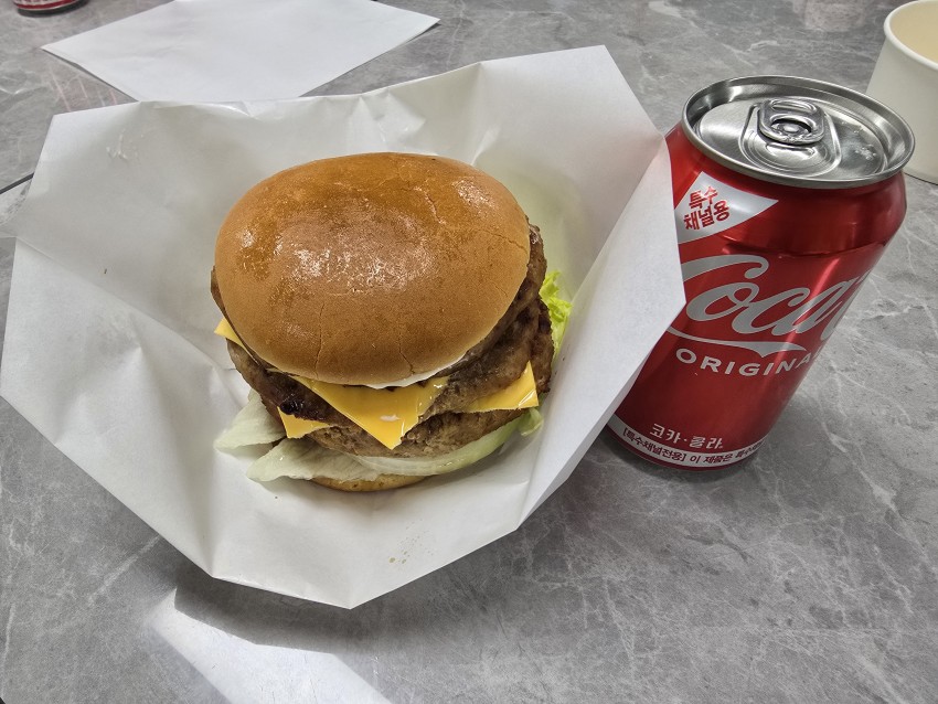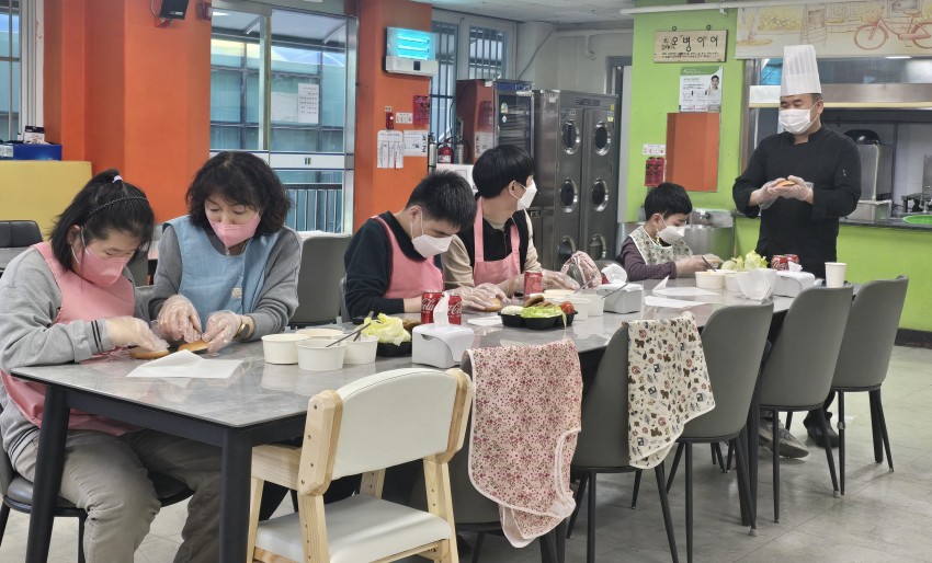 빵을 미리 살짝 구워서 보관하고, 양상추와 토마토 구운양파 피클 슬라이스를 준비하고, 수제햄버거 패티를 2장 치즈를 2장씩 차례로 넣고 위에 준비한 양상추, 토마토, 구운양파, 피클을 넣어 완성하였는데, 참여 이용인 분들이 좋아하는 메뉴라 집중해서 조리 실습하는 모습이 보기 좋았고, 완성된 치즈 버거를 콜라와 맛있게 시식하는 즐거운 저녁 시간이었습니다!