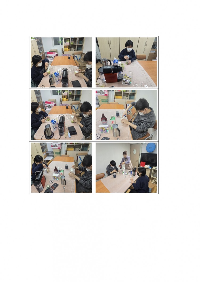 캡슐 커피머신기로 커피를 추출한 후 말차를 이용한 말차라떼와 생크림과 초코시럽을 이용하여 카페모카를 만들어 보고 시음하며 2025년 빛카페 프로그램을 이용인들과 평가하며 마무리하는 시간이었습니다.